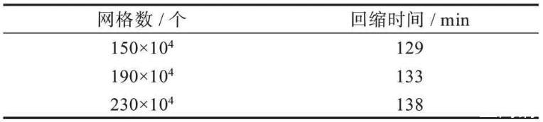 表2網(wǎng)格數(shù)與回縮時間表