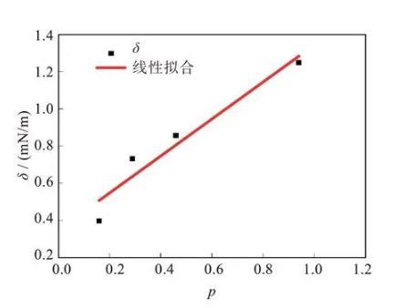 可以看出,系統黏度比從0.16~0.94逐漸增大的過程中,PS/POE體系的界面張力隨黏度比的增大而增加。