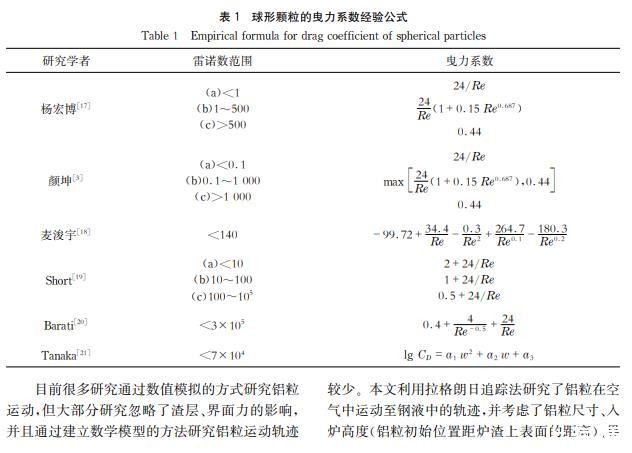 結果表明:在渣層厚度為70 mm且入爐高度為1~1.5 m的情況下,1 mm和5 mm的鋁粒在渣鋼界面處波動;入爐高度為1 m時,粒徑為10 mm的鋁粒停留在渣鋼界面處,但在入爐高度為1.5 m及以上時可以進入鋼液;20 mm及以上尺寸的鋁粒可以進入鋼液。在入爐高度為1 m時、30 mm尺寸的鋁粒在鋼液中的停留時間與深度相較于20 mm的基礎上分別增加22.86 %和50.00 %;在鋁粒尺寸為20 mm時、入爐高度為1.5 m時的鋁粒在鋼液中的停留時間與深度在1 m的基礎上分別增加5.71 %和10.00 %。
