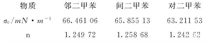 表3鄰二甲苯、間二甲苯和對二甲苯表面張力實(shí)驗結(jié)果