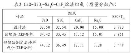 表2 CaO-SiO2-Na2O-CaF2熔渣組成(質(zhì)量分數(shù)/%)