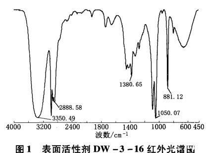 G511型立式攪拌器;真空泵;電熱恒溫水浴鍋;Perkin-Elmer 1700型FT-IR光譜儀,美國Perkin Elmer公司;KQ-C玻璃儀器氣流烘干器;TX-500型旋滴界面張力儀