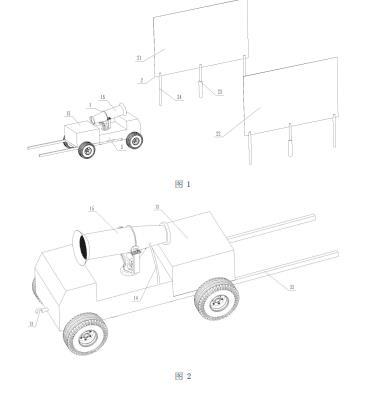所述公路施工用降塵設備執(zhí)行降塵動作,降塵動作包括:控制器通過攝像頭判斷施工的公路是否有揚塵情況,若出現(xiàn)揚塵則獲取揚塵的所在的路段,啟動噴頭對準揚塵所在路段,同時啟動正電荷發(fā)生裝置11和加壓裝置12向所在的路段噴淋帶有正電荷的液滴,同時將所在的路段的若干組電極板組2的繼電器實現(xiàn)接通對應的第一電極板21、第二電極板22,同時交變電場發(fā)生裝置使得第一電極板21和第二電極板22之間產生交變電場;帶有正電荷的液滴在交變電場中產生振蕩進而降低液滴表面張力作用;