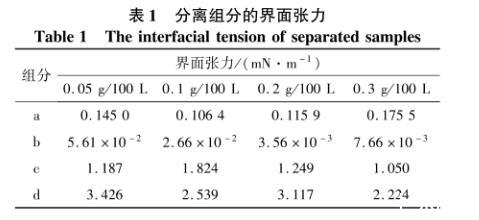 表1分離組分的界面張力
