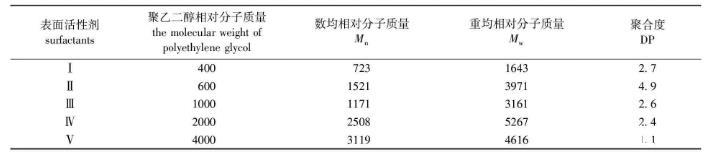 表1 5種表面活性劑的相對分子質量及聚合度(DP)