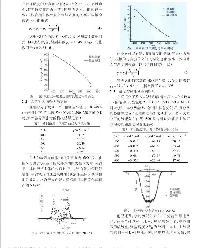 溫度、截?cái)喟霃健⒛M分子數(shù)對水汽液界面特性的影響規(guī)律(二)