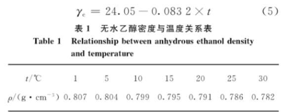 表1無水乙醇密度與溫度關系表