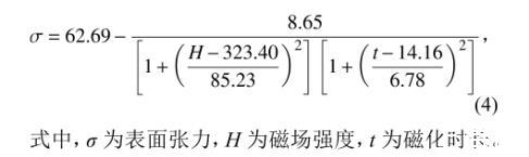 式中,z表示溶液表面張力,z0表示零點(diǎn)偏移量,x表示磁場強(qiáng)度,y表示磁化時(shí)長,A1~A5分別為x~x5的系數(shù),B1~B5分別為y~y5的系數(shù)。