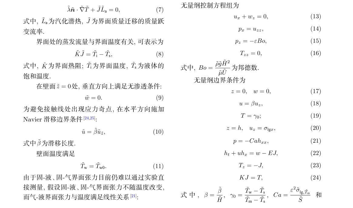 采用積分法可得液滴厚度的演化方程為