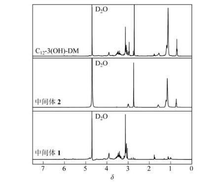 圖3 Gemini表面活性劑C12-3(OH)-DM的核磁共振氫譜
