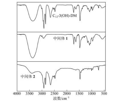 圖1 Gemini表面活性劑C12-3(OH)-DM的紅外光譜圖