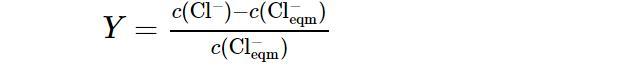 式中:c(Cl?)(mol/L)為溶液中Cl?的總摩爾濃度;c(Cl?eqm)(mol/L)為由于NaCl的加入而增加的Cl?的摩爾濃度.每組實(shí)驗(yàn)均在Cl?的超額含量Y=0.5的條件下進(jìn)行.