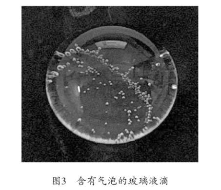 玻璃試樣要保證化學組成的均勻性,且內部不能包含缺陷(氣泡、結石和條紋等)。如有氣泡會導致玻璃熔體體積失真,如圖3所示。氣泡中的氣體受熱會進一步膨脹,使玻璃液滴體積增大,導致玻璃液滴在測試溫度下的密度偏低,最終影響玻璃熔體表面張力的測試結果。玻璃條紋和結石等缺陷也是玻璃成分不均的表現,在受熱條件下影響玻璃熔體液滴形態,導致無法獲得中心旋轉軸對稱的玻璃液滴,因此應選擇無內在質量缺陷的玻璃。
