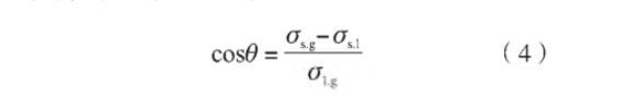 承托板在測試過程中與玻璃熔體產生直接接觸,承托板材質首先要滿足測試溫度的要求,符合玻璃熔體測試溫度要求并易獲得的材質有鉑銠合金、石英、剛玉和石墨。材料表面與玻璃熔體產生潤濕與非潤濕問題,潤濕能力由相鄰兩相的自由表面能決定,用表面張力的大小來表示[9]。當固體、液體和氣體三者之間相互作用力達到平衡時,就必須服從式(4):