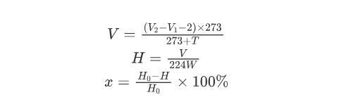 式中:V為在1個(gè)標(biāo)準(zhǔn)大氣壓、273 K的條件下生成氫氣的體積,mL;V 1為反應(yīng)前堿式滴定管的讀數(shù),mL;V 2為反應(yīng)后堿式滴定管的讀數(shù),mL;T為反應(yīng)溫度,℃;H為反應(yīng)產(chǎn)物的含氫量,10-2 mol/g;W為樣品質(zhì)量,g;x為MDHM轉(zhuǎn)化率;H 0為反應(yīng)前產(chǎn)物的含氫量,10-2 mol/g。