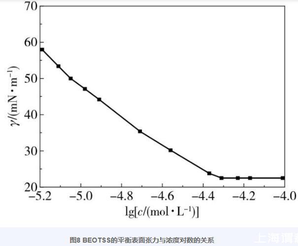 圖8 BEOTSS的平衡表面張力與濃度對數的關系