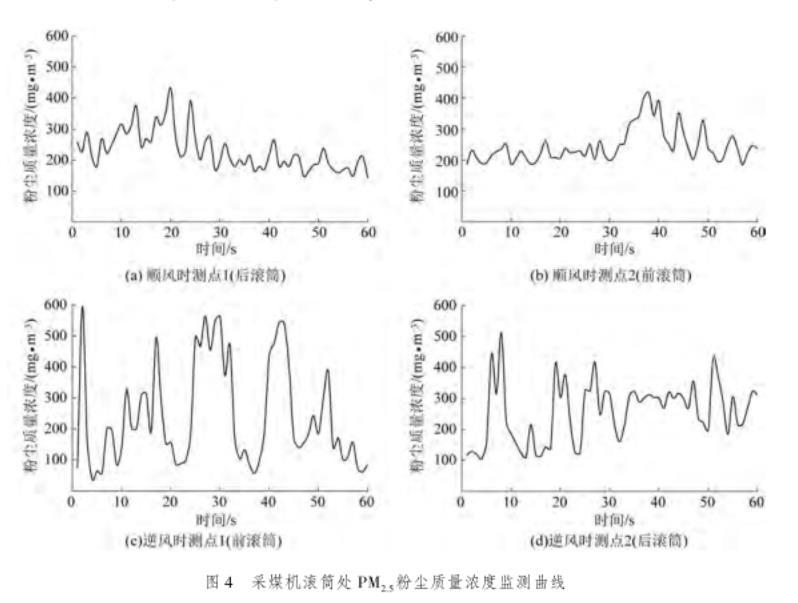 圖4采煤機滾筒處PM2.5粉塵質量濃度監測曲線