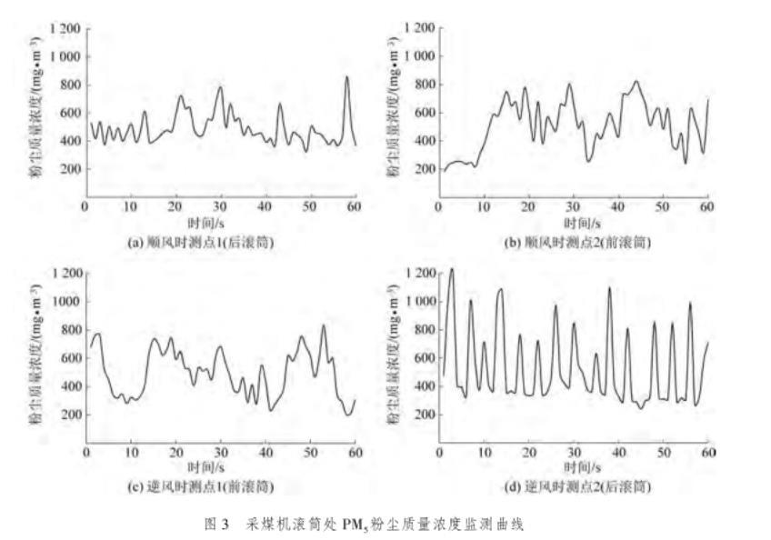 圖3采煤機滾筒處PM5粉塵質量濃度監測曲線