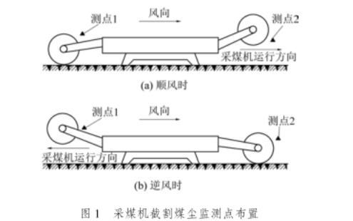 圖1采煤機截割煤塵監測點布置