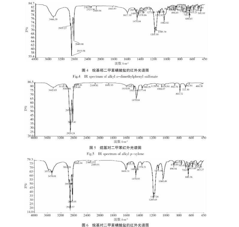 圖4烷基鄰二甲苯磺酸鹽的紅外光譜圖