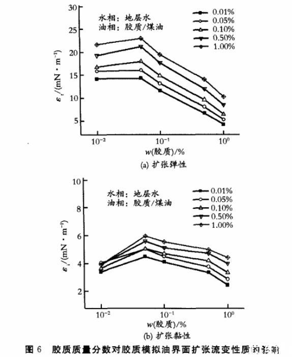 圖6膠質(zhì)質(zhì)量分?jǐn)?shù)對(duì)膠質(zhì)模擬油界面擴(kuò)張流變性質(zhì)的影響
