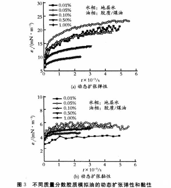 2.2原油活性組分的動(dòng)態(tài)界面擴(kuò)張流變性質(zhì)