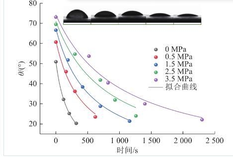 圖5不同瓦斯壓力下煤與水之間動態接觸角