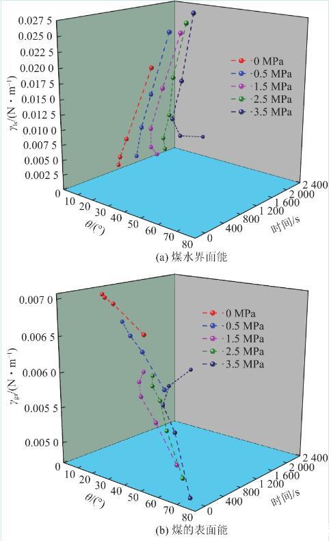 3.2煤水界面能、煤的表面能及黏附功的動態演化規律