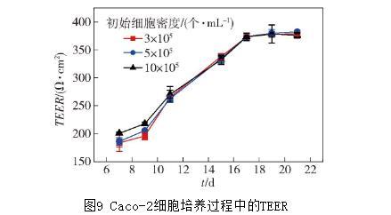 圖9 Caco-2細(xì)胞培養(yǎng)過程中的TEER