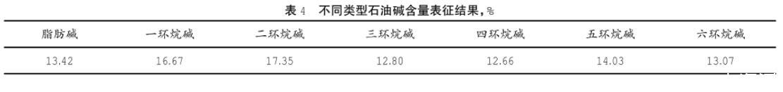 (2)萃出石油堿組分含量為4.46%,相對分子質量主要分布在300~700,碳數對應C21~C49,結構以環(huán)烷堿為主;