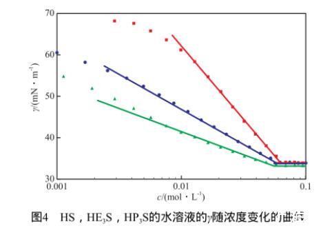 圖4 HS,HE3S,HP3S的水溶液的γ隨濃度變化的曲線(xiàn)
