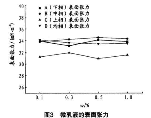 對上述微乳液進行了表/界面張力的測試,結(jié)果見圖3。