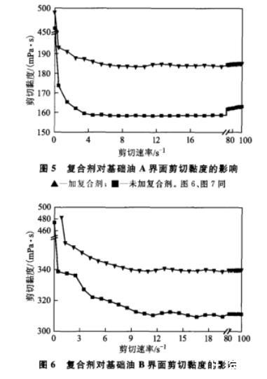 圖6復合劑對基礎油B界面剪切黏度的影響