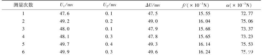 表2原有金屬吊環測量液體的表面張力系數數據表(水溫25℃)