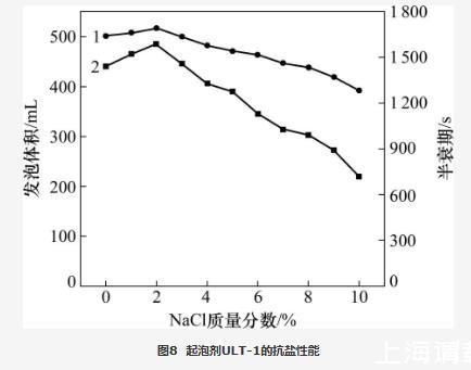 圖8起泡劑ULT-1的抗鹽性能