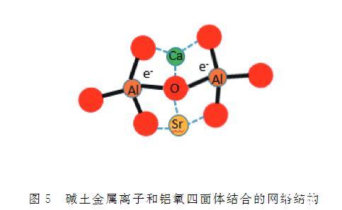 圖5 堿土金屬離子和鋁氧四面體結(jié)合的網(wǎng)絡(luò)結(jié)構(gòu)