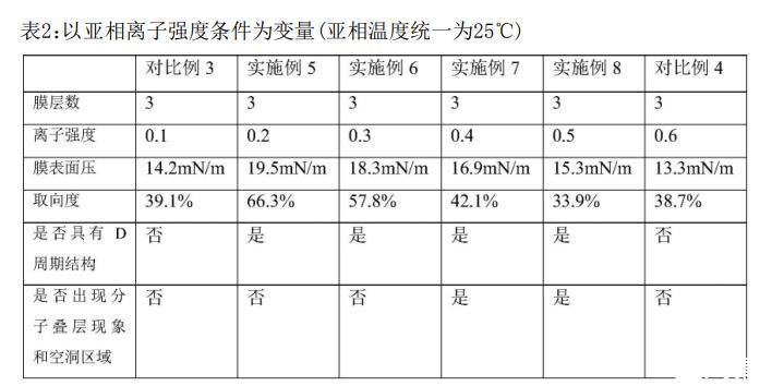 ?對(duì)比實(shí)驗(yàn):亞相溫度過(guò)高(>30°C)或離子強(qiáng)度過(guò)低(<0.2)會(huì)導(dǎo)致纖維排列混亂(對(duì)比例1–4),超純水亞相則無(wú)法形成D周期結(jié)構(gòu)(對(duì)比例5)。