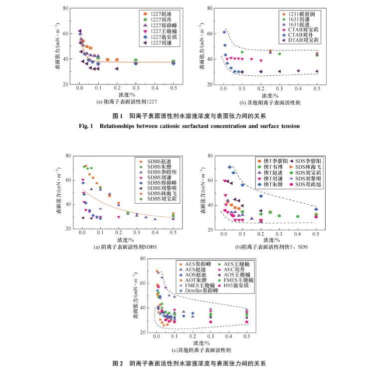 圖1陽(yáng)離子表面活性劑水溶液濃度與表面張力間的關(guān)系
