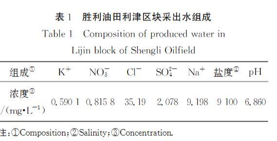 實驗試劑:葡萄糖、檸檬酸鈉、酵母粉、KH2PO4、(NH4)2SO4、MgSO4·7H2O、乙酸乙酯為分析純,購自國藥集團化學試劑有限公司;正己烷為優級純,購自Merck公司;二氯甲烷為優級純,購自B&J公司;正構烷烴混合標準:C8—C40包含異構烷烴姥鮫烷和植烷,購自Accustandard公司;層析硅膠(100~200目)及硅膠層析板購自青島海洋化工廠;原油采集自中國石化勝利油田有限公司利津區塊;降解實驗用水根據勝利油田利津區塊采出水組成配置(見表1),采出水中pH、鹽度用多參數儀(Manta3.0,Eureka,美國)測定,K+、NO-3、Cl-、SO2-4、Na+等離子依據SY/T5523—2016《油田水分析方法》中給出的檢測方法檢測。