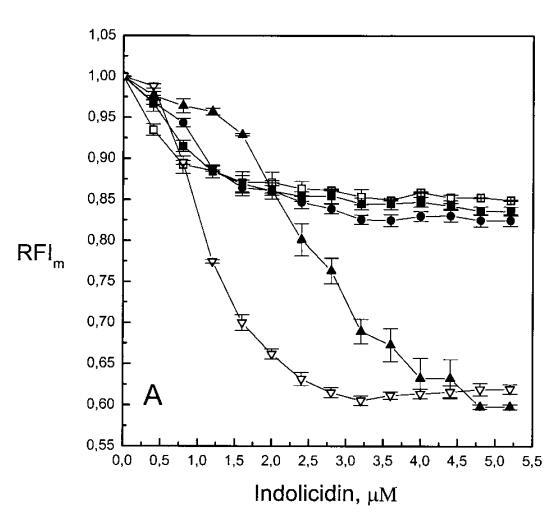 這兩種抗菌肽對(duì)芘標(biāo)記的磷脂類似物的猝滅機(jī)制令人感興趣。可能涉及π-陽(yáng)離子相互作用(Dougherty,1996),后者由肽的堿性殘基表示。吲哚西丁具有較高的Trp含量(39%),可促進(jìn)其分配到脂質(zhì)雙層(Wimley和White,1996)。因此,芘和色氨酸之間的π-相互作用也是可能的。已經(jīng)證明,色氨酸可以淬滅膠束溶液中各種芘衍生物的熒光發(fā)射(Encinas和Lissi,1986;Altamirano等人,1998)。另一種可能性是鏈反轉(zhuǎn)(Holopainen et al.,1999),通過(guò)肽與脂質(zhì)雙層結(jié)合,導(dǎo)致芘部分調(diào)節(jié)到更極性的環(huán)境中,從而增加熒光團(tuán)微環(huán)境的極性,并導(dǎo)致量子產(chǎn)率降低。