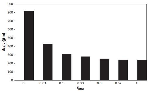 圖8給出了以與圖3相同的HFBII:WPI比率制備的兩種泡沫的初始?xì)馀莩叽纭W钪匾挠^察結(jié)果是,少量HFBII(來自fHFBII 0.03)在很大程度上影響泡沫的初始?xì)馀莩叽纭4送猓坪鯊腤PI主導(dǎo)向HFBII主導(dǎo)的行為轉(zhuǎn)變發(fā)生在fHFBII~=0.2,對應(yīng)于朗繆爾槽中吸附層中觀察到的轉(zhuǎn)變(圖6)。
