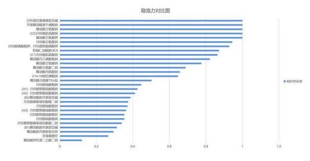 相同表活劑其起泡性能與穩(wěn)泡性能并不存在相關性,起泡性能好的表活劑,其穩(wěn)泡性能也未必好。