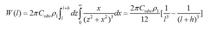 始終ρ1為無限大平板物體單位體積的分子數(分子密度);h為平板的厚度;l為單個分子到平板的最近距離。