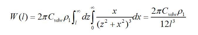 若取l為物質本體內分子間的距離d11,且兩半無限體為同一種物質時,則上式的互作用勢變為(取絕對值