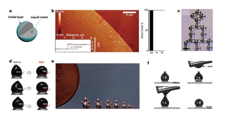 液態金屬在含有微量氧氣的環境中就會被氧化,形成0.5–5 nm的自限的氧化層,獲得保持非球面形狀的能力。