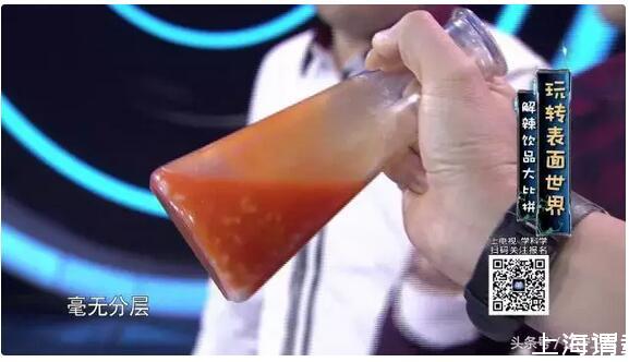 最終,在將辣椒油分別倒入三種飲料里之后發現,只有米湯可以完美的和辣椒油相融,完全沒有分層現象!