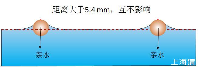 其規律是:親水的物體使液面升高,親水的物體之間靠近有加強作用,使中間的液面比兩側要高。同理,疏水的使中間液面更低。而這兩者都表現為相互吸引。