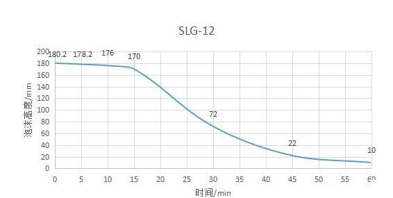 起始0min的泡沫高度即為該表活的發泡力,高度越高,則表示其起泡力越強;穩泡力用5min、10min、30min、45min、60min泡沫高度作曲線圖形式呈現其規律;泡沫維持時間越長,表示其穩泡力越強。
