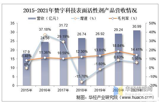 贊宇科技集團股份有限公司是專業(yè)從事表面活性劑、油脂化學品研發(fā)制造和洗化產(chǎn)品代加工的高新技術(shù)企業(yè)。長期以來,公司憑借先進的理念、科學的管理以及技術(shù)和人才的優(yōu)勢,堅持自主創(chuàng)新,走科技成果產(chǎn)業(yè)化的發(fā)展道路,現(xiàn)已成為國內(nèi)研究和生產(chǎn)表面活性劑的龍頭企業(yè)之一。據(jù)資料顯示,2021年公司表面活性劑產(chǎn)品營收為30.99億元,同比增長5.98%,毛利率為14.41%。