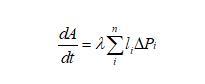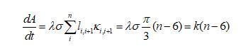 下面我們推導(dǎo)二維泡沫的演變方程,由于任一氣泡跟周圍氣泡的氣體交換都是通過(guò)氣泡邊界進(jìn)行的,則氣泡體積(二維氣泡用面積表示)隨時(shí)間的變化率跟邊界長(zhǎng)度和邊界上的壓強(qiáng)差都有關(guān)系,可以表示為